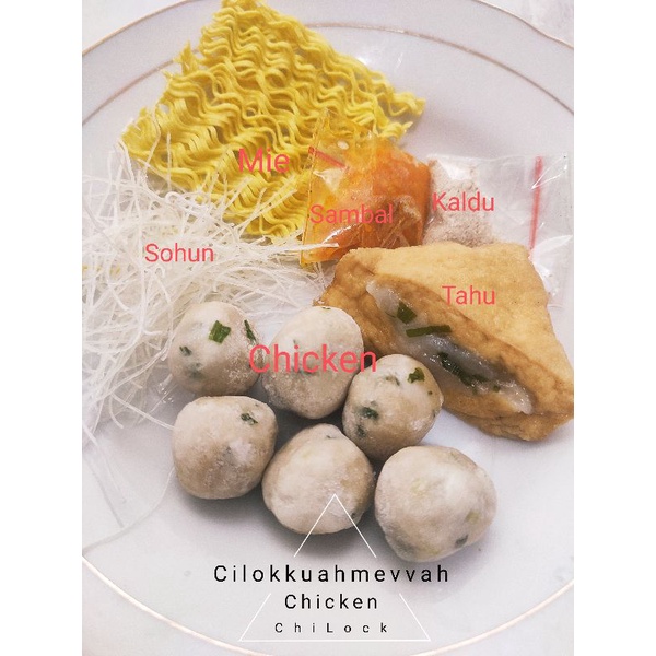 Bakwan pentol bakso halus bakso urat tahu baso siomay mie kuning lengkap bumbu kuah .